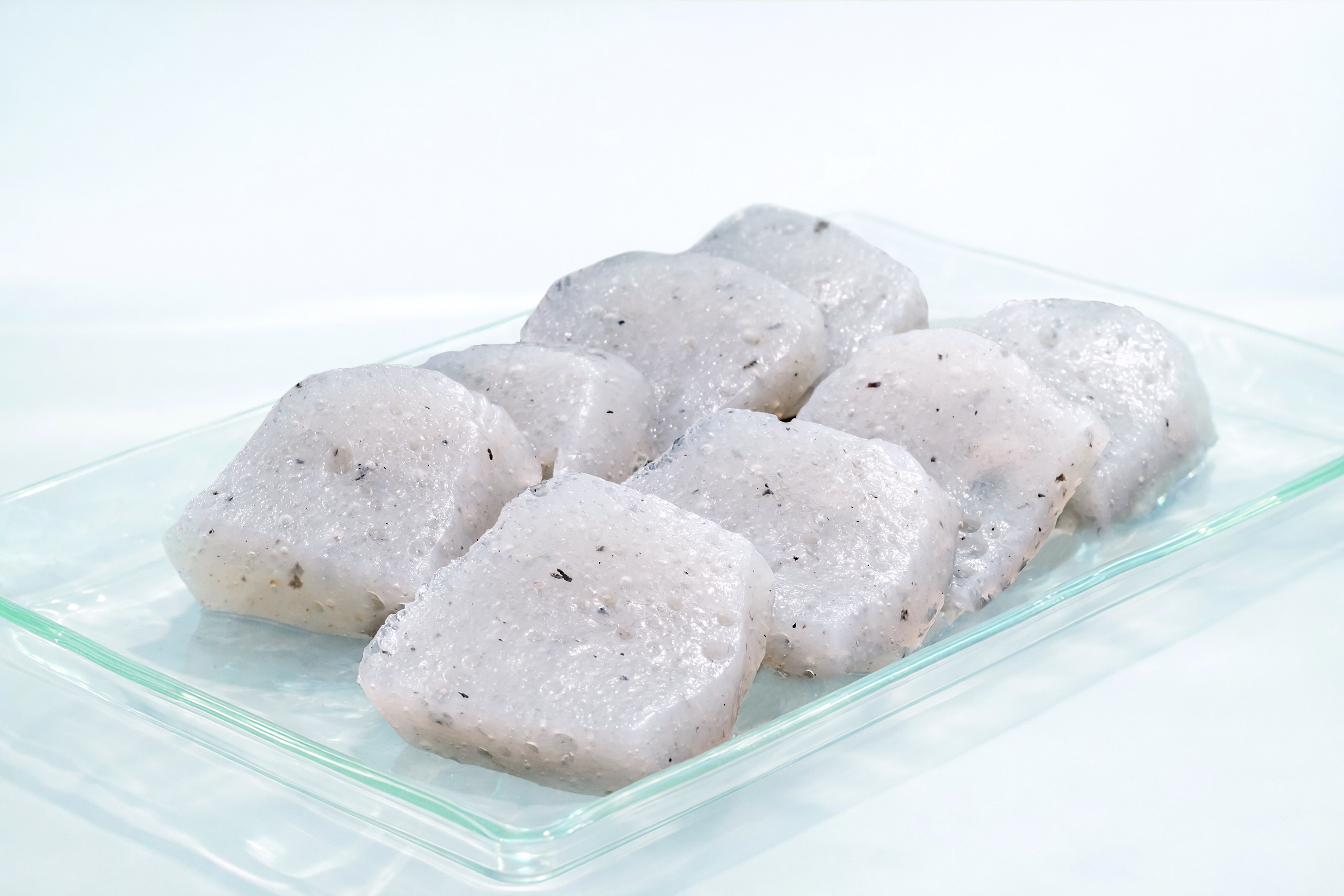 また表面がツルツルになっており、歯応えが弱く感じられたり、こんにゃく独特の匂いが強いと言われています。この匂いは海藻のニオイとこんにゃくを作るために必要な凝固剤が原因となります。