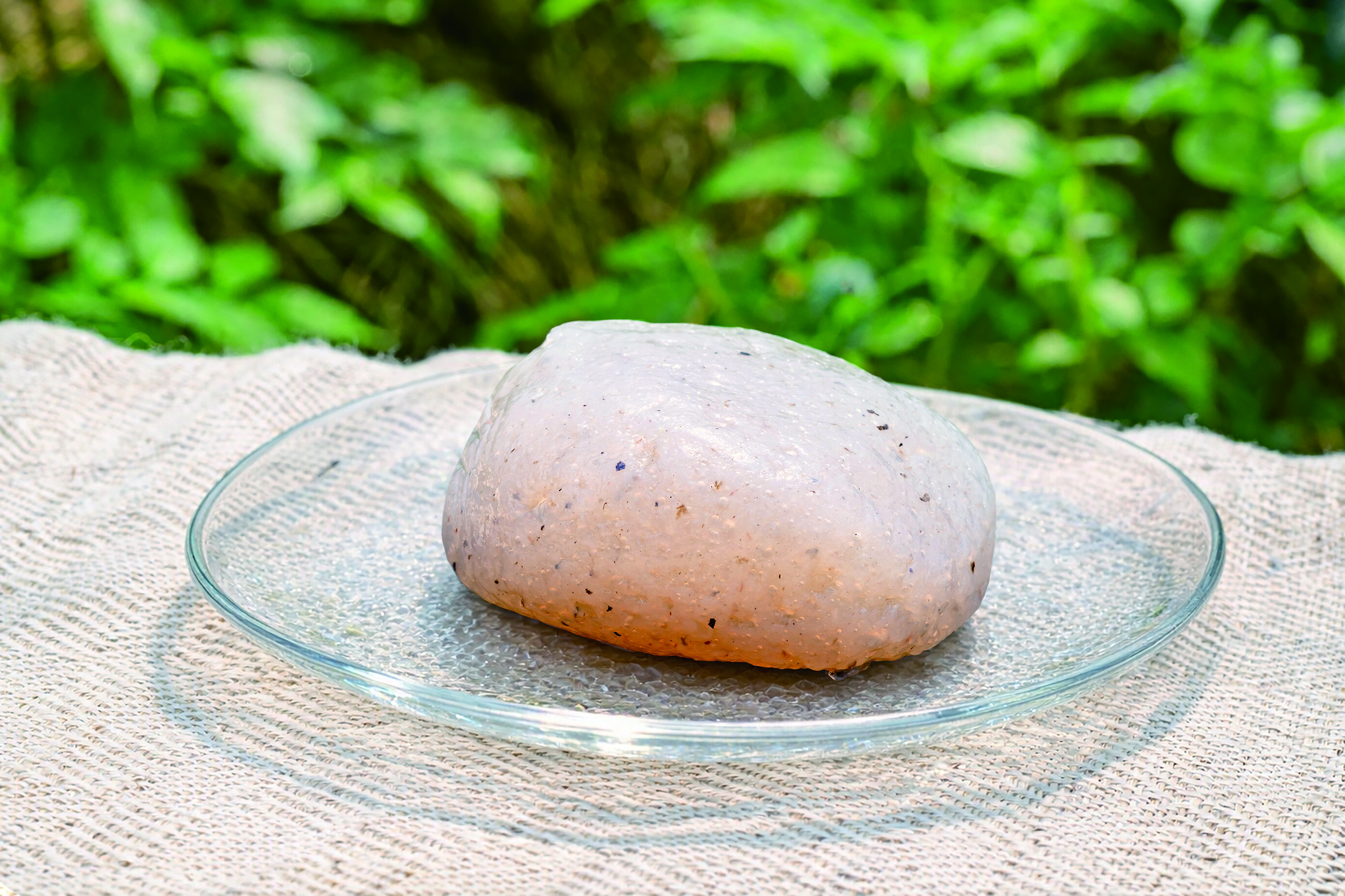 蒸したこんにゃく芋を皮ごとすりおろす『どぶずり製法』。